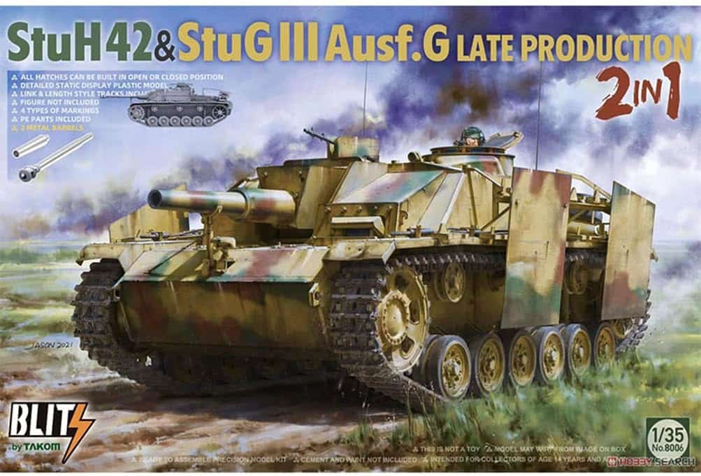 Hua Tian Zhi Zao TAKOM BLITS 8006 StuH 42 & StuG III Ausf. G Late Production 1/35 Scale Model kit,2 in 1