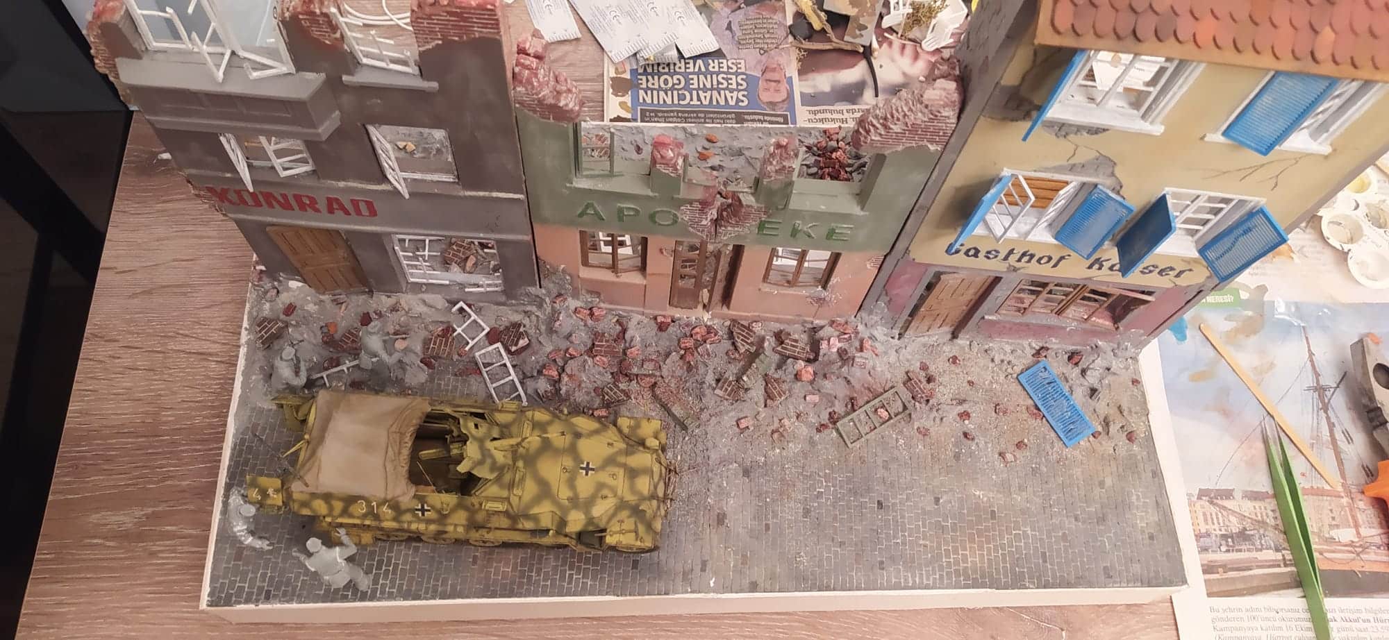 Our diorama story takes place in Remagen. It’s dated March 15, 1945. “A scene from the Remagen street battles”