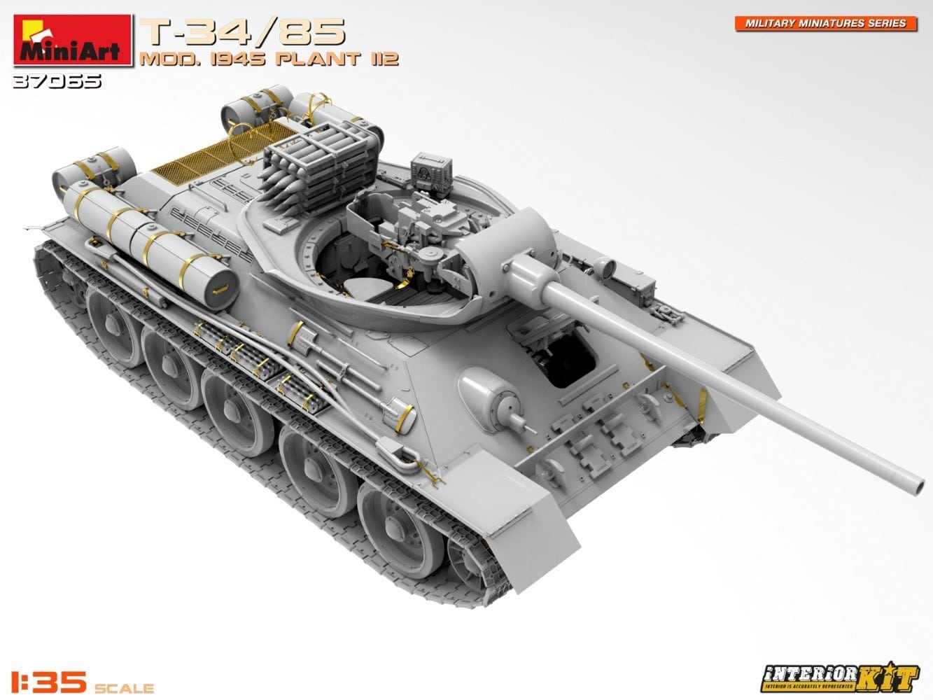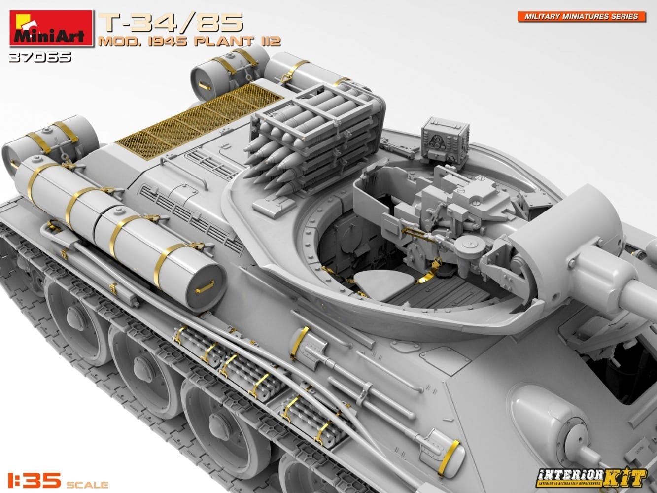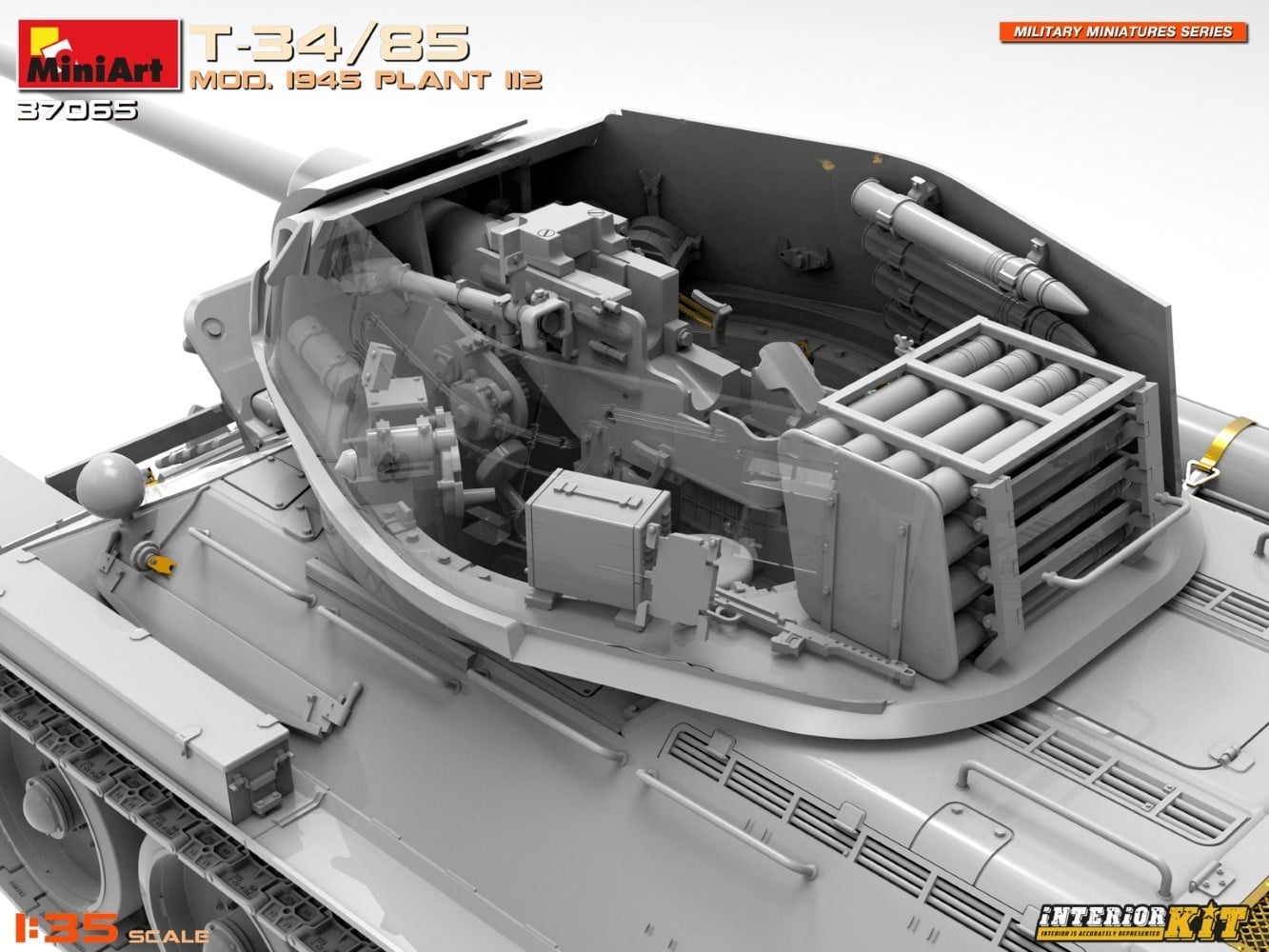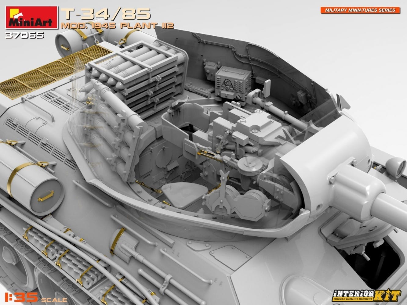 The new MiniArt T-34/85 Mod. 1945 Plant 112 Interior Kit features a number of features that make it a must-have for scale modelers, including: