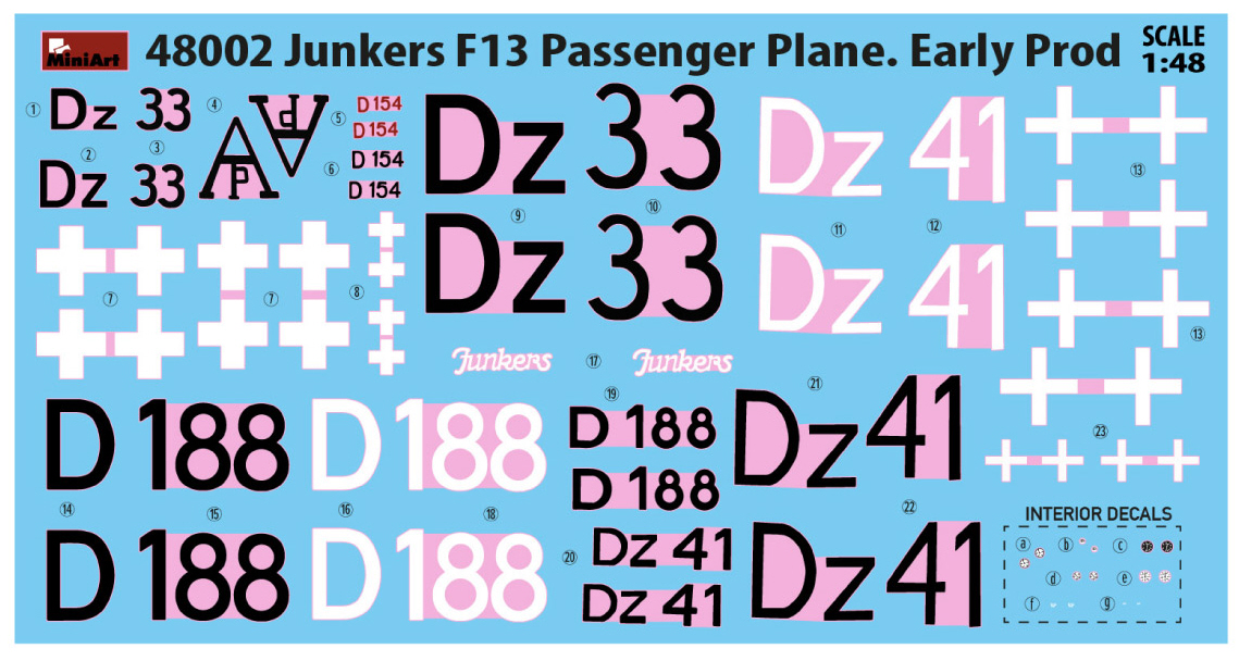 The kit contains three marking choices in the box.Full engine & clear parts are includedWe first saw the nucleus of this new series of 1/48th scale Junkers J13 from a cryptic post on Facebook earlier this year. This new tooling from MiniArt in the form of the Junkers F13 in 48th Scale is soon to be released. In 1920 it entered service, and 322 aircrafts were built over the next decade. The last recorded commercial flight operated by Germany took place just before the outbreak of World War II in 1939.