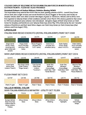 - Page with 24 color paint chips of 4 sets for Italian Military Forces that have been used in World War II