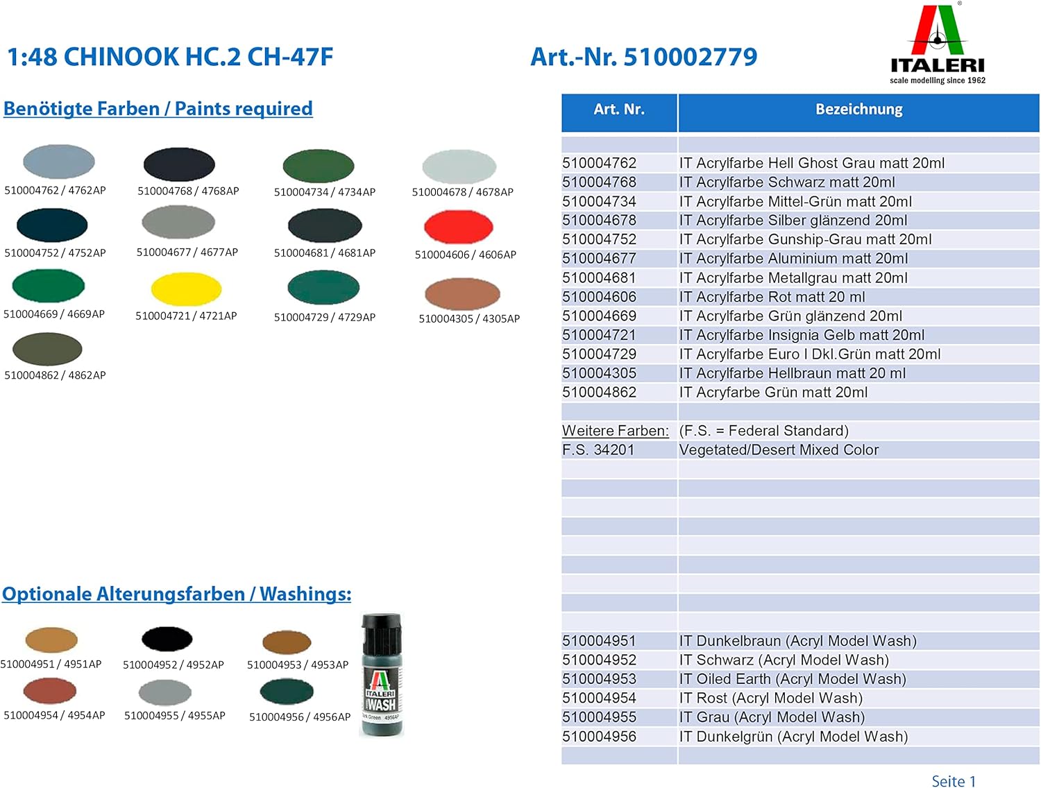 Shop Italeri 2779 Chinook, HC.1/Ch.47D, 1 : 48 Posted by Haluk Cetin June 25, 2025 On June 25, 2025 0 Price: $62.82(as of Jun 25,2025 16:53:54 UTC – Details) Chinook Hc.1/Ch-47d 1:48 Scale 1:48.Length: approximately 340 mm.Includes stickers.