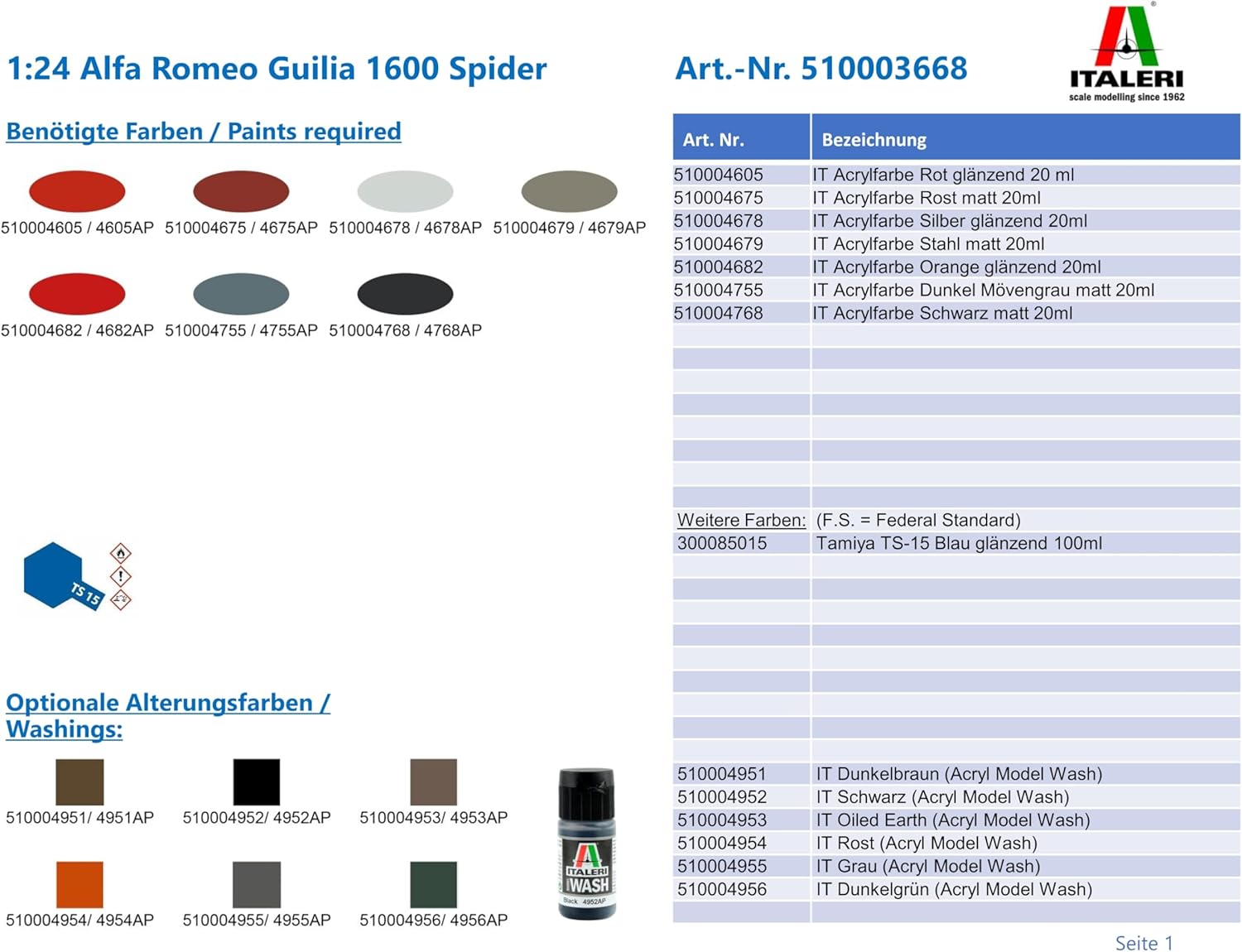 Italeri IT3668JP 1/24 Alfa Romeo Julia 1600 Spider