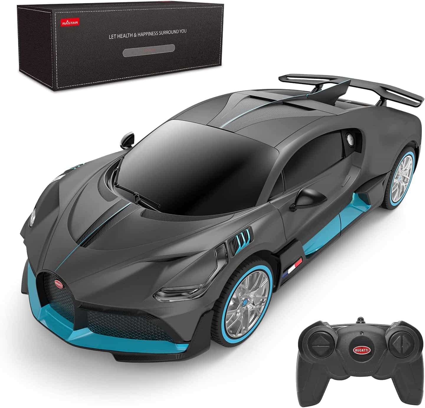 Officially authorized Bugatti remote control car: 1:24 scaled back on real limited edition Bugatti Divo, The Divo is BUGATTI’s first coach built hyper sports car of the 21st century. This Rastar Bugatti Divo rc car measures 19.3×9.2×5.2 cm.