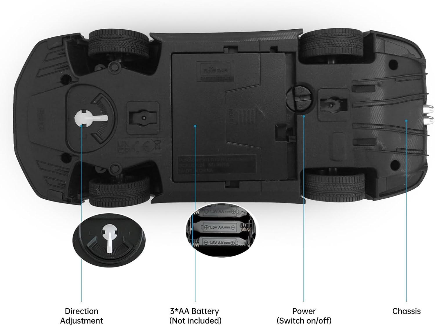 Batteries NOT included – Requires 3 x AA for the Porsche remote car and 2 x AA for the remote