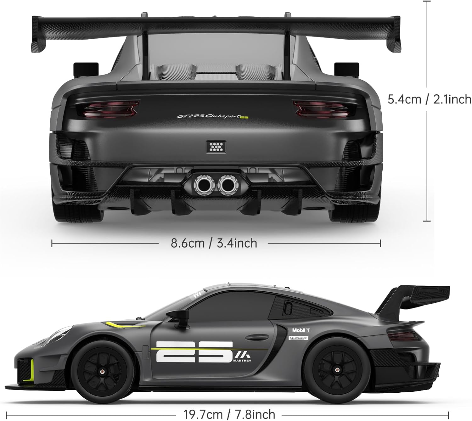 RASTAR Porsche 911 GT2 RS Model Car, 1:24 Scale RC Porsche 911 GT2 RS Clubsport 25 Remote Control Car for for Kids Adults, RC Sports Supercar Grey