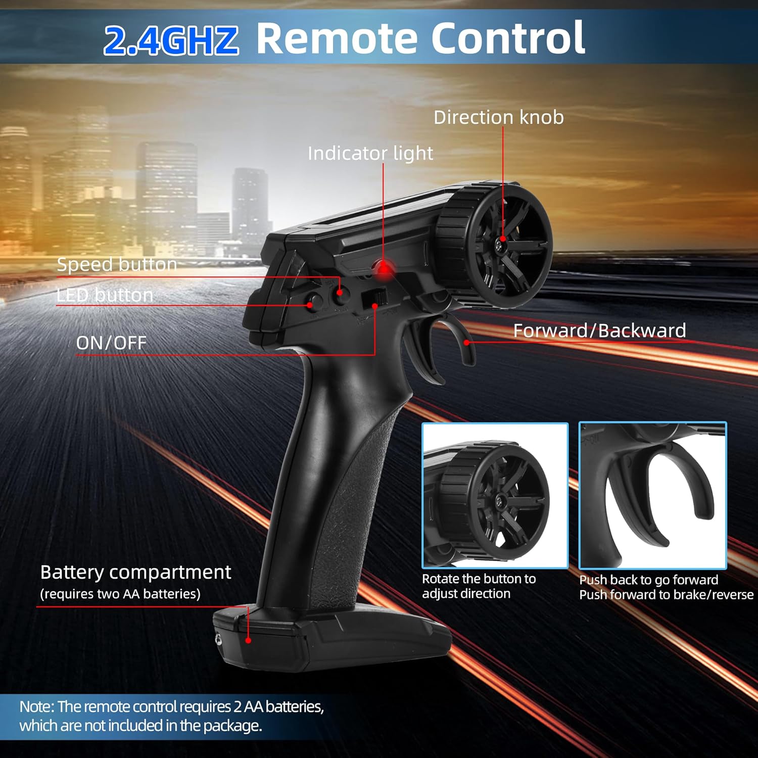 2.4GHz Control System: Equipped with a 2.4GHz wireless remote control, it supports multiple remote control cars drifting and racing at the same time without interfering with each other. Note: The remote requires two AA batteries that are not included. )