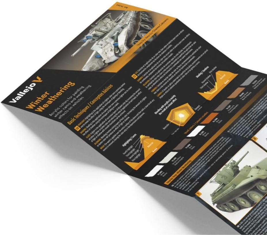 The Winter Weathering Model Paint Set has been designed and developed by Chema Cabriro. This set contains a carefully selected selection of paints that are suitable for painting vehicles, tanks or artillery in a weathered camouflage with dirt, rust and other effects to achieve a realistic result. Set includes an author’s detailed painting guide. Airbrush Thinner can be used to dilute the colors for airbrush use. The colors are designed for brush application but they can also be used in an airbrush. The colors are easy to blend and apply, have a matt surface and self-leveling qualities that prevent brushstrokes from appearing on the painted surface. Paints are formulated with modern resins that provide high resistance to handling. Set of eight bottles, each 18 ml (0.60 fluid ounces). The set contains 8 bottles of 18 ml (0.60 fl.oz.) The new Game Color formulation is a fresh approach to painting miniatures. The new Game Color range was developed by our experts in collaboration with professional modelers. It represents a new step in miniature painting, offering a simple and intuitive painting technique to younger generations. The Winter Weathering paint set was designed by Chema Cabriro. This set contains a carefully selected paints that are suitable for painting vehicles, artillery, or tanks in a weathered camouflage with dirt and rust effects. Set includes an author’s detailed painting guide.This set contains 8 bottles each containing 18 ml (0.60 fluid ounces). The set contains 8 bottles of 18 ml (0.60 fl.oz.) each. The colors are easy to blend and apply, and have a matt surface. They also offer excellent self-leveling qualities that prevent brushstrokes from appearing on the painted surface. Paints are resistant to handling, rubbing and other factors thanks to the use of modern resins. The new range, developed by our experts in collaboration with professional modelers represents a new step in miniature painting. It offers an intuitive and simple-to-learn method of painting to new generations. The paint is opaque, has a high pigment concentration, and spreads easily. It is also more fluid. The colors were chosen for their maximum brightness, stability, and light resistance.